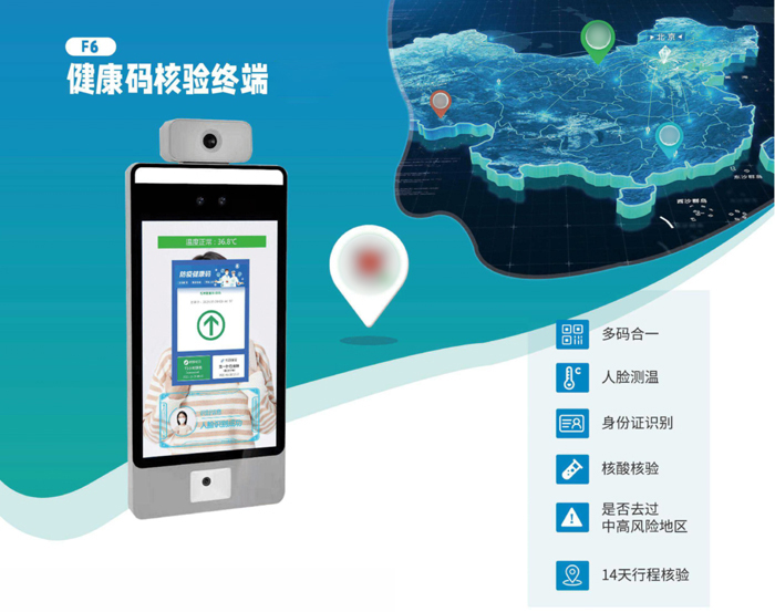 F6智能人臉識(shí)別測(cè)溫健康碼核驗(yàn)閘機(jī)通道/立柱款,是由深圳市遠(yuǎn)景達(dá)物聯(lián)網(wǎng)技術(shù)有限公司自主研發(fā)、特別針對(duì)全國各地的“刷身份證自動(dòng)核驗(yàn)健康碼”應(yīng)用進(jìn)行深入定制開發(fā)的一款人臉識(shí)別測(cè)溫型產(chǎn)品,可支持掃碼/刷身份證核驗(yàn)國家平臺(tái)健康碼以及地方健康碼健康數(shù)據(jù)(多碼合一版本),支持國康碼核酸數(shù)據(jù)檢測(cè),14天行程檢驗(yàn),是否去過中高風(fēng)險(xiǎn)地區(qū)數(shù)據(jù)檢測(cè),并實(shí)時(shí)上傳至云平臺(tái),進(jìn)行大數(shù)據(jù)管理以及人員流調(diào)追溯。