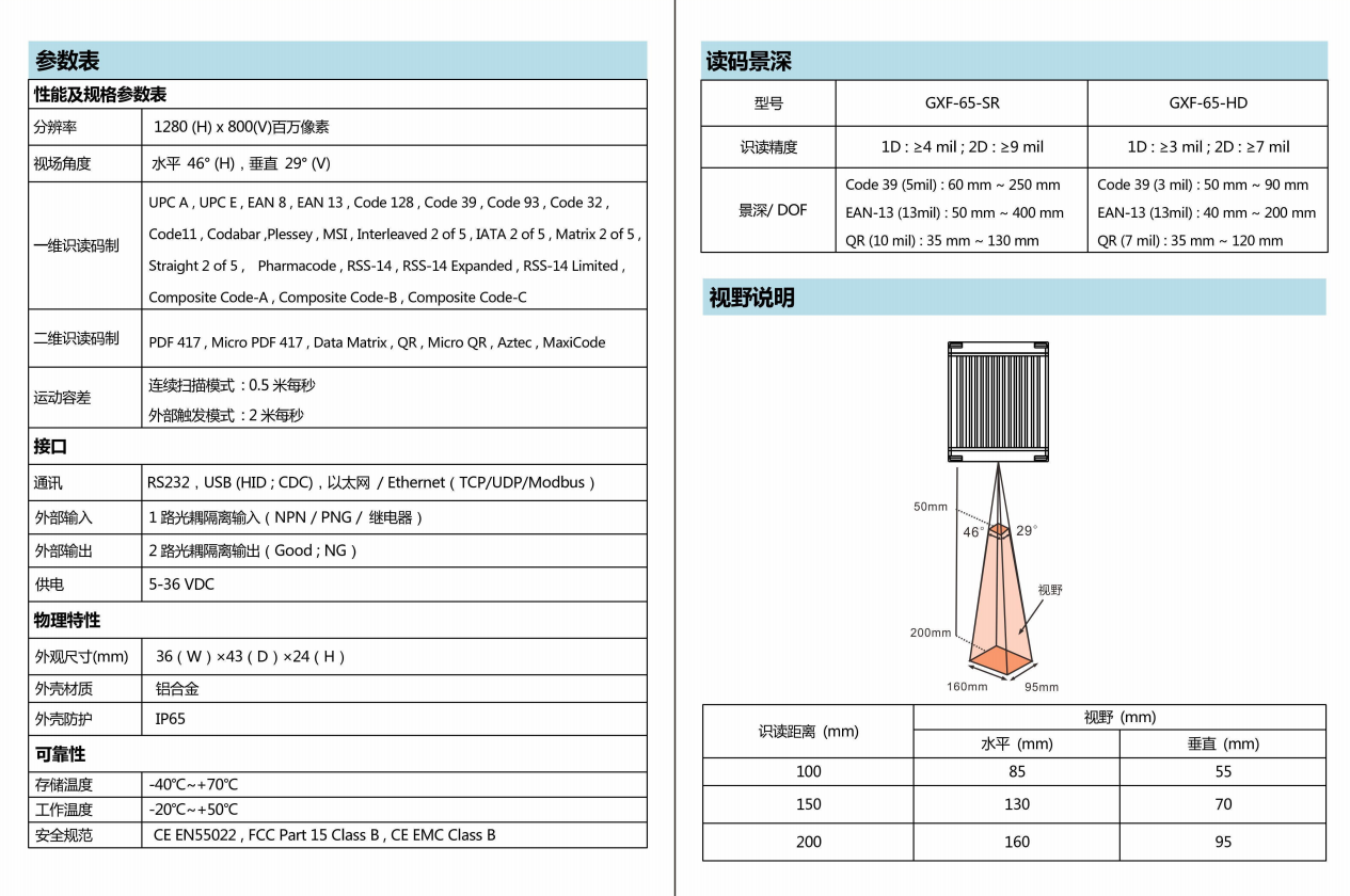 GXF-65 固定式條碼掃描器