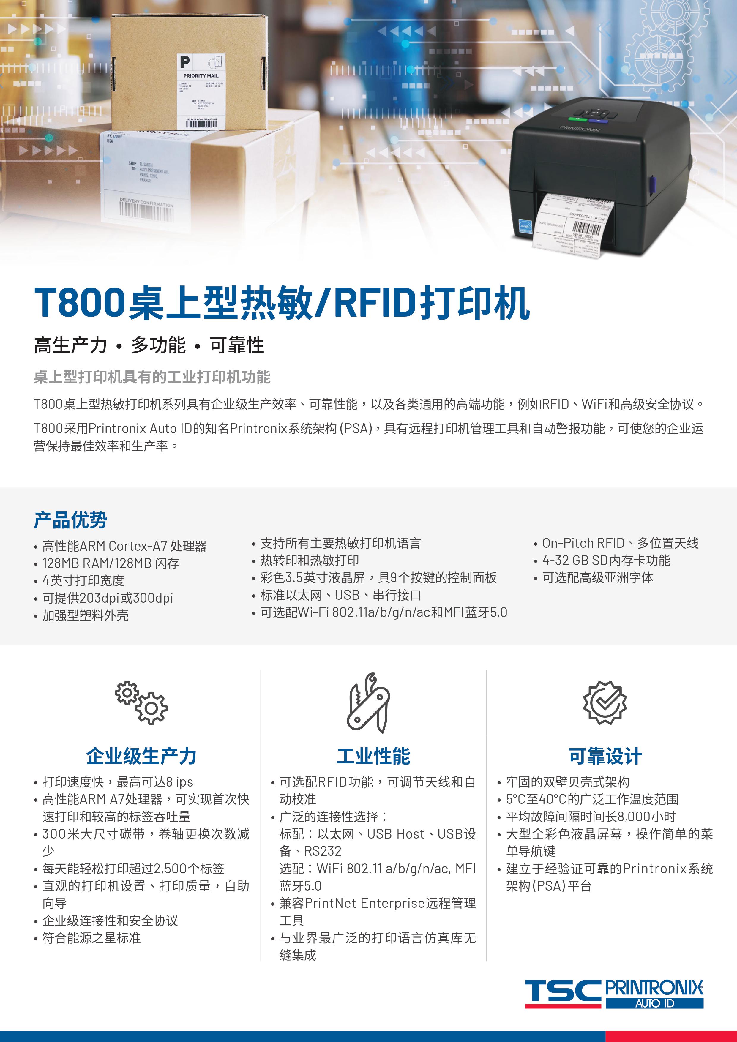 • T800 桌上型熱敏 /RFID 打印機(jī)